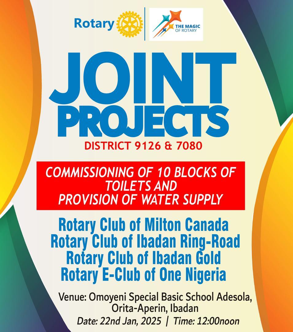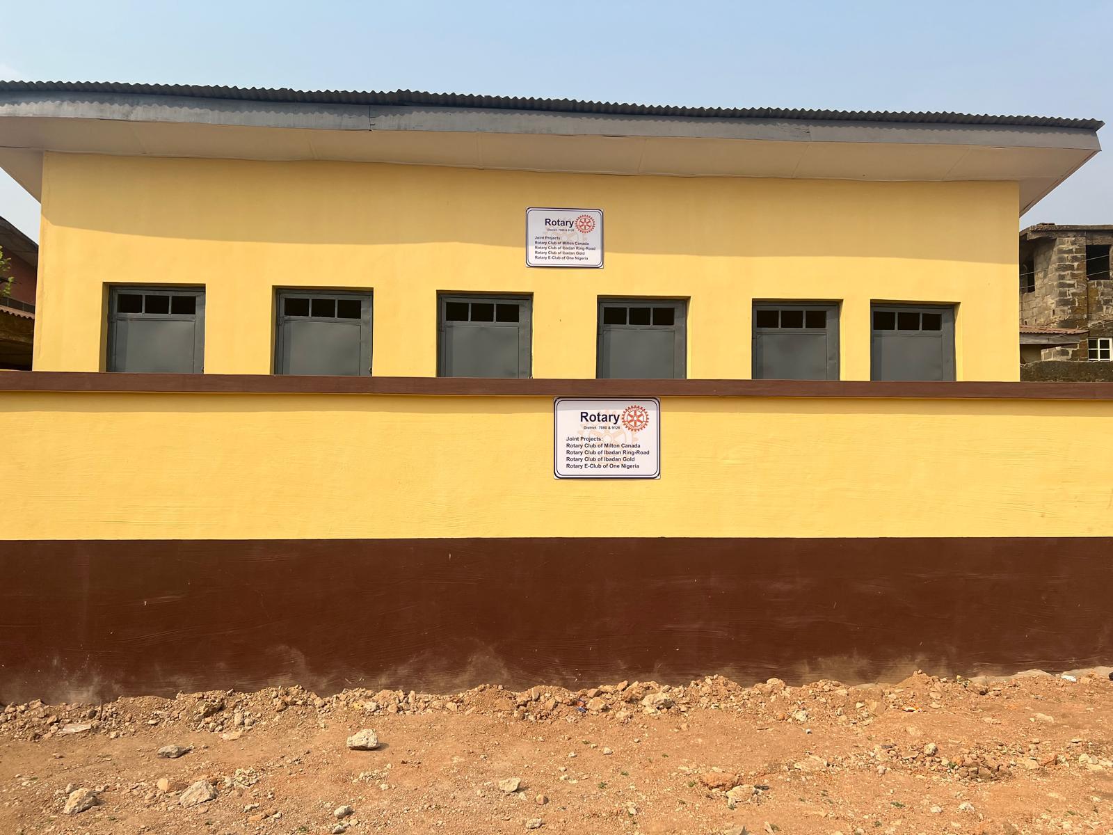 Together, the Rotary Club of Milton (Canada), led by Abiola Akinremi, Rotary Club of Ibadan Ring-Road, Rotary Club of Ibadan Gold, and Rotary E-Club of One Nigeria have commissioned 10 blocks of toilets and water supply at Omoyeni Special Basic School Adesola, Orita-Aperin, Ibadan.